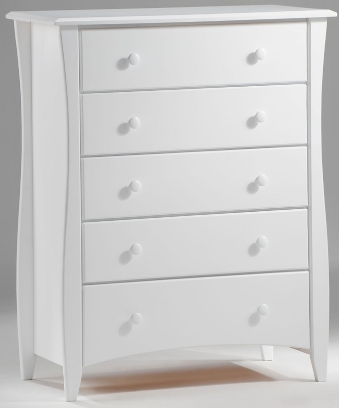 The curvy edges and outstanding finish of our Clove Cases help create a soothing environment while keeping your things neatly organized. Big drawer storage and the Armoires' entertainment center fit well into the attractive styling of the Clove group. Our Clove 5 Drawer Chest pleases with it's stately look, and gives you fabulous storage while taking up minimal floor space. The long curves of it's tall legs may be it's finest feature. Every set comes complete with two sets of drawer knobs, to assemble per your choice in either wood or metal (pewter finish). All Spices Bedroom Collection items comes with a limited 10 year warranty; see local store for full details.
